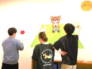 ひろばでは、学生サポーターたちが「子どもたちが楽しく過ごせる環境づくり」の一環として、毎月季節に合わせた壁面装飾を手作りしています。